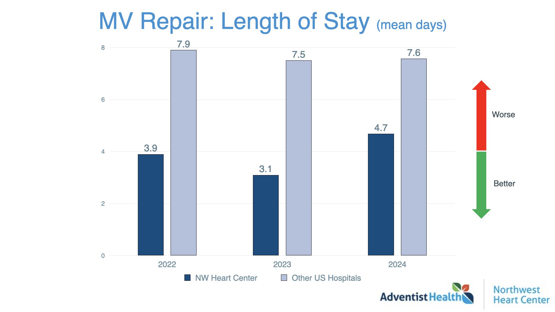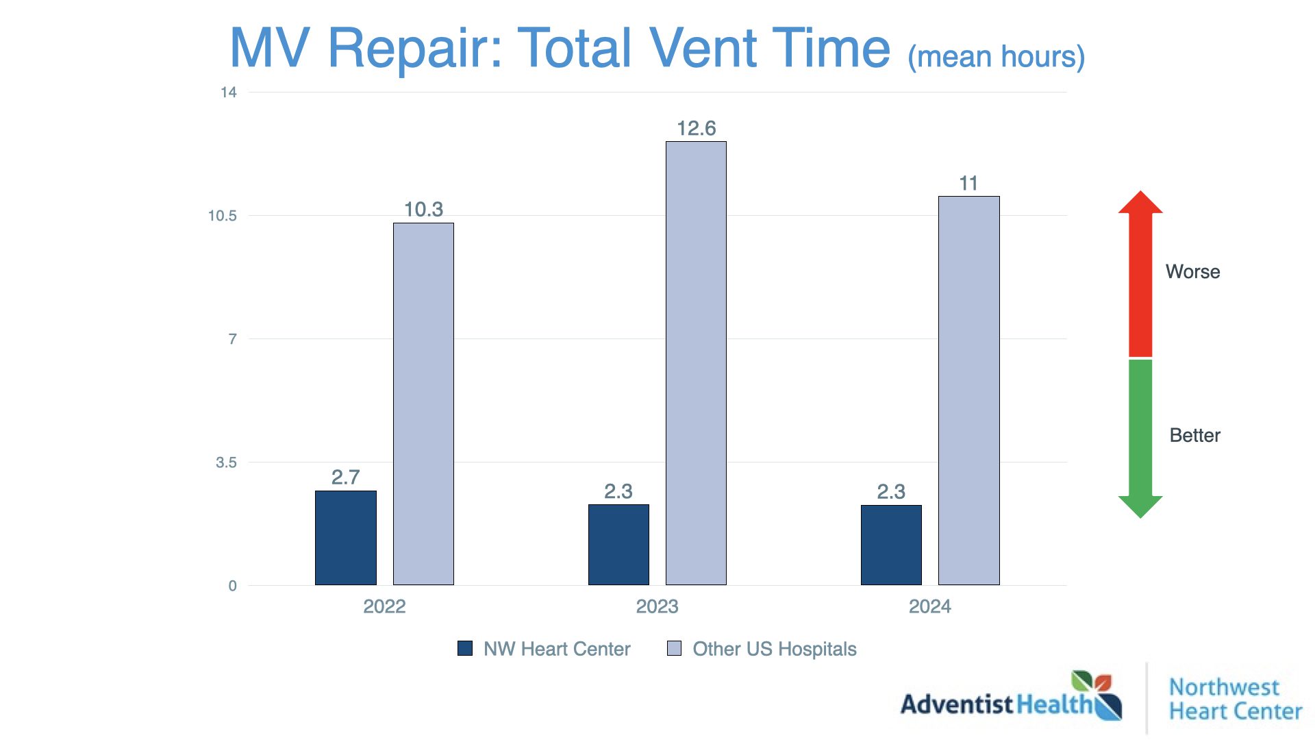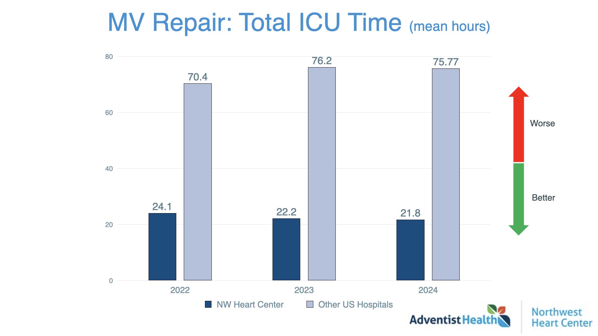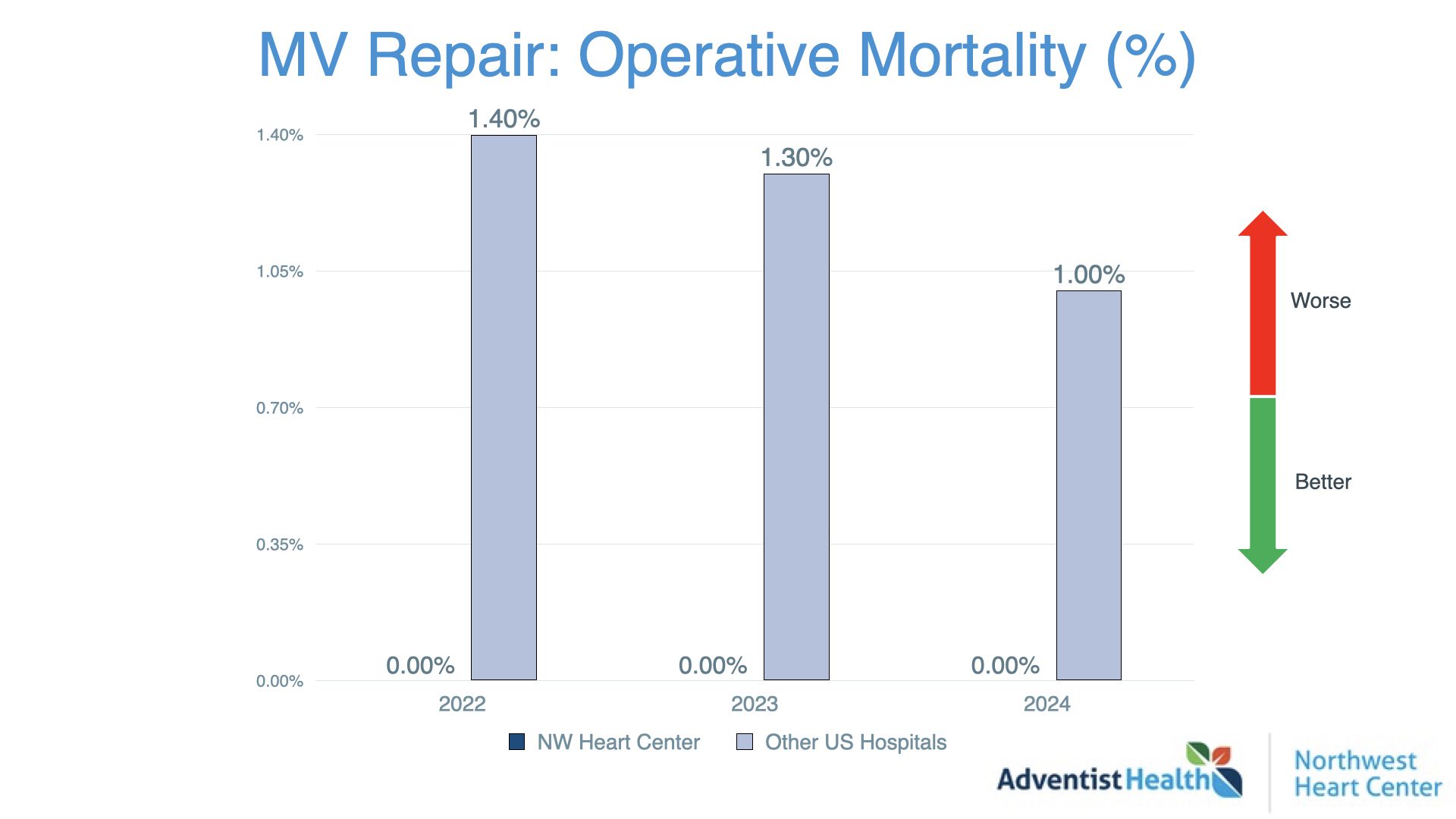 Click to expand the following images, which feature graphs comparing our mitral valve surgery data to other heart programs: